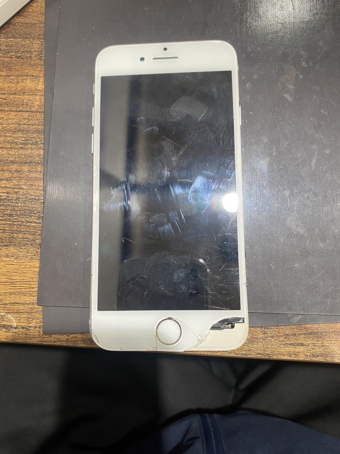 今回のご依頼は手から滑り落ちてしまって、右下の部分が中が見えてしまうほど割れてしまったiPhone8です。