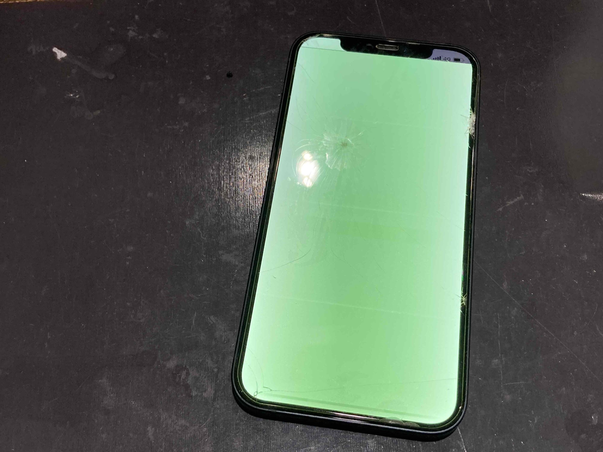 緑に輝き続けるiPhone12Proの画面交換修理を行いました。