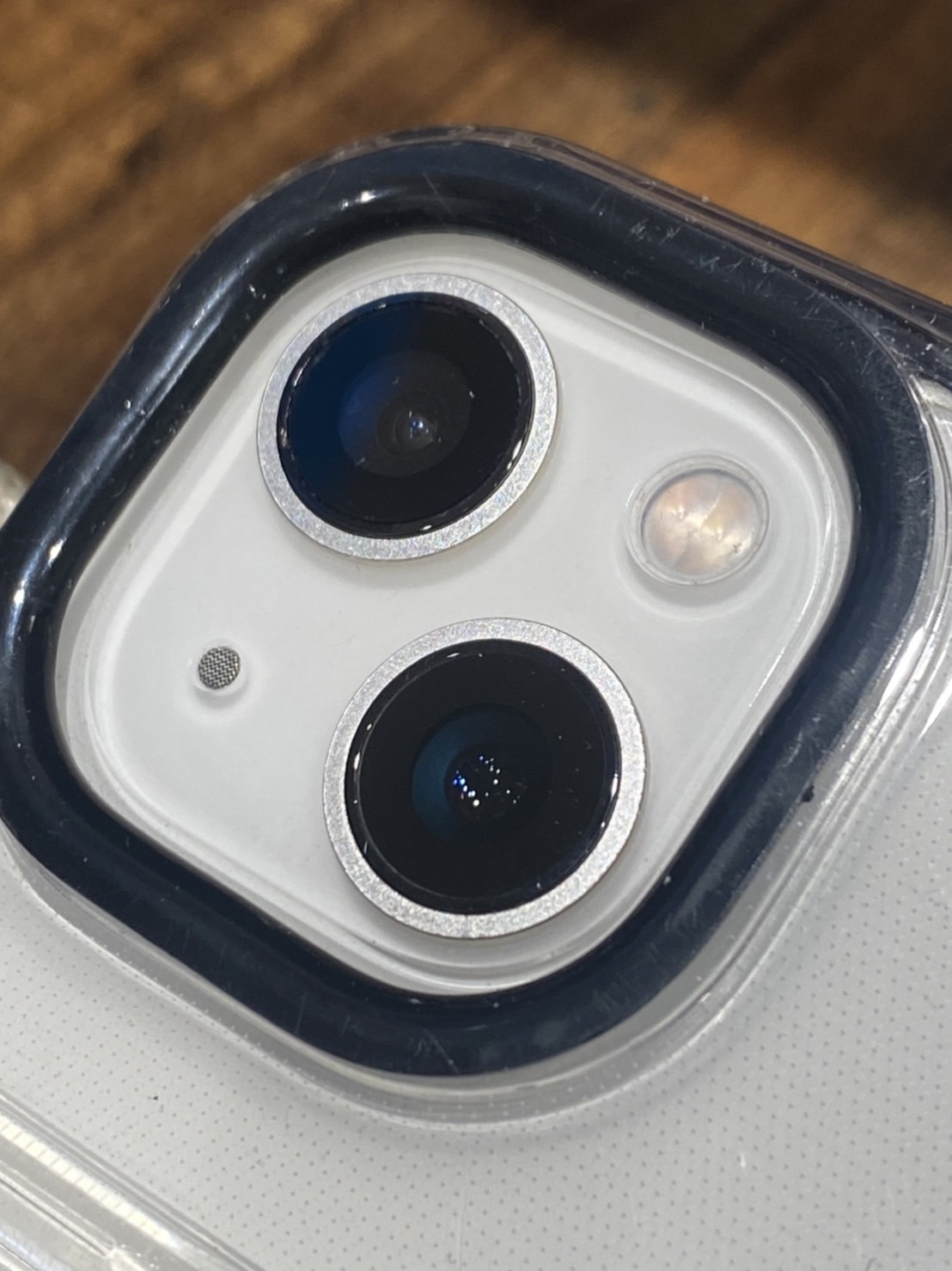 角にぶつけて割れてしまった、iPhone13の カメラレンズの交換修理です。