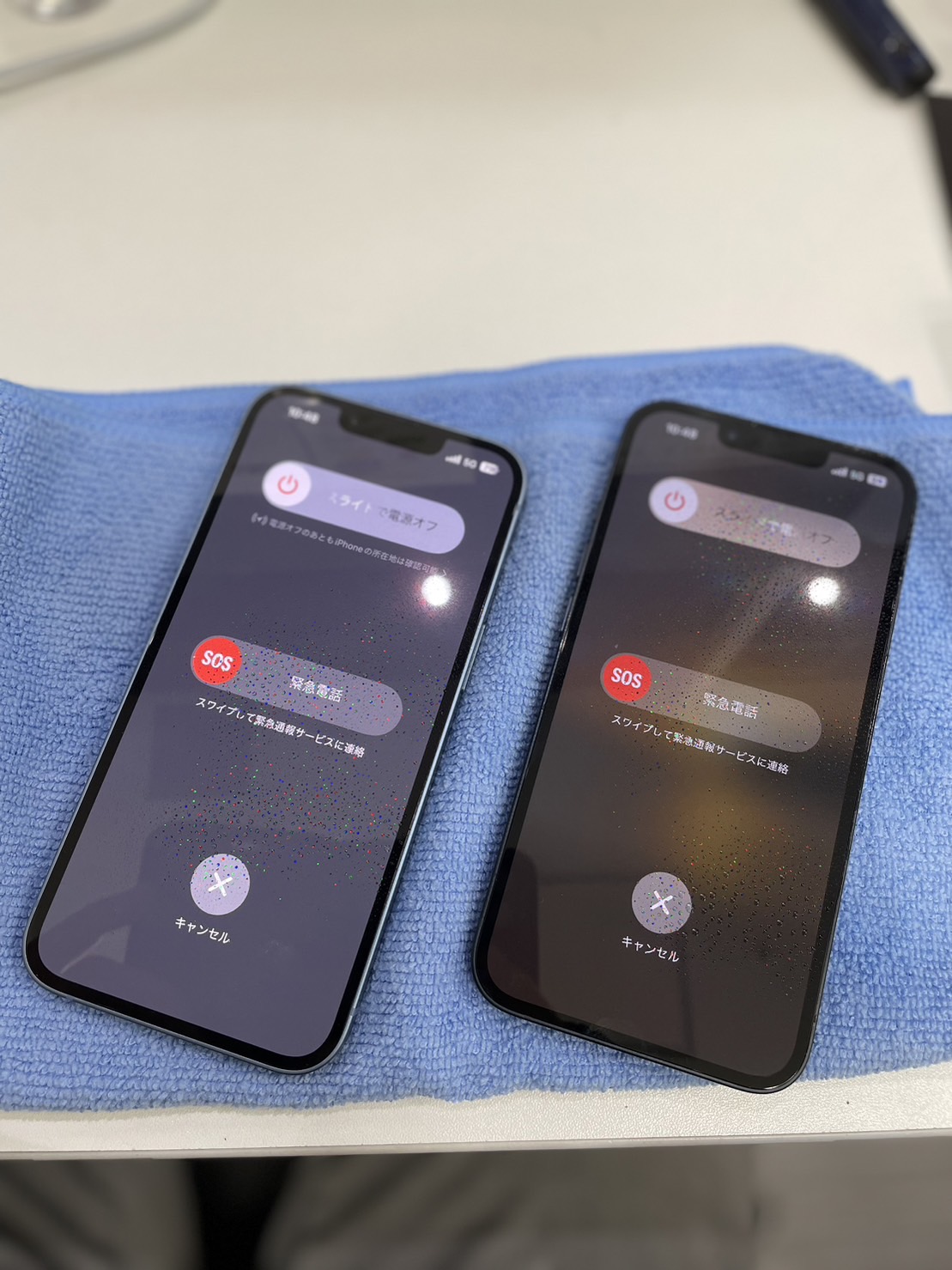 ご家族で来ていただけました。iPhone15 2台同時カラスコーティングです。