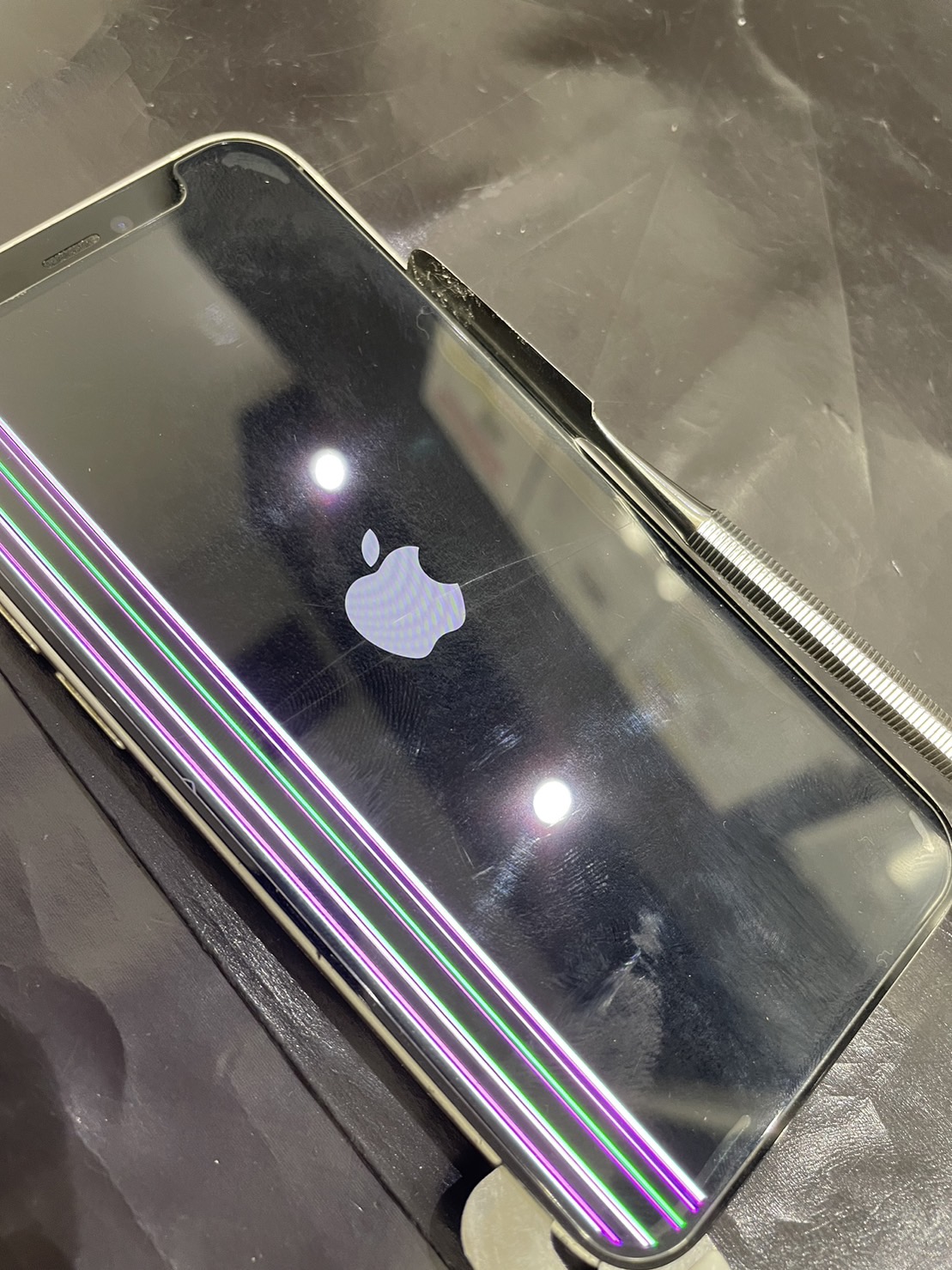 液晶画面に虹色の光が現れて、操作不能になったのでお店に来ていただけました。