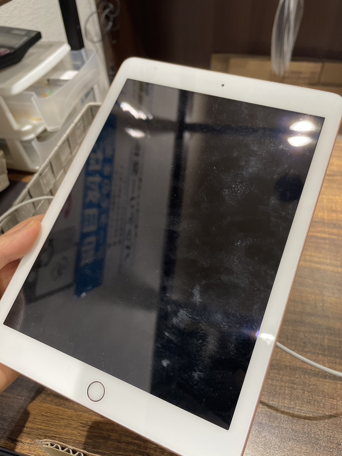 仕事用に使っていたiPad。常時充電器と繋げながら置いていたそうです。