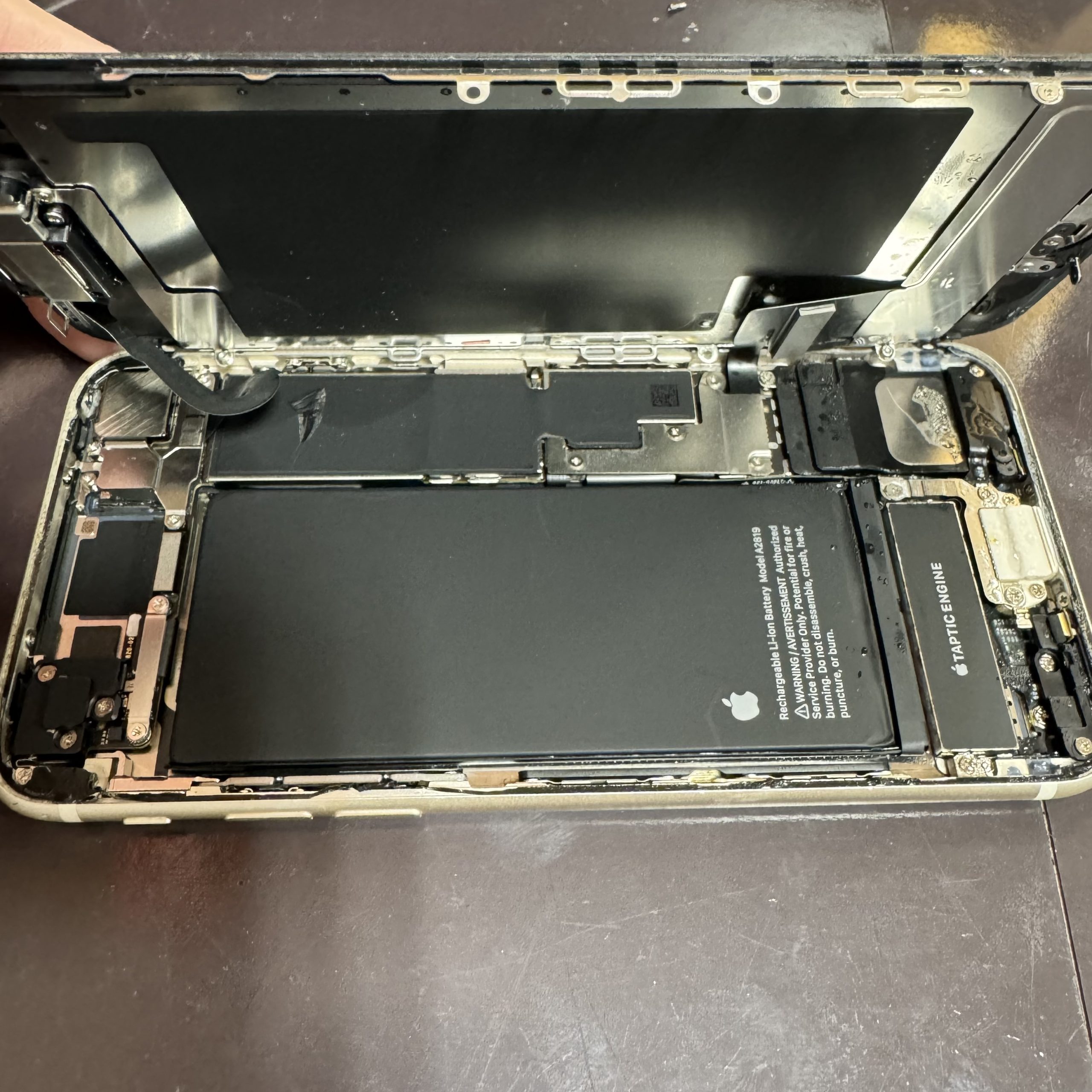 修理を行うために画面を開けてみると