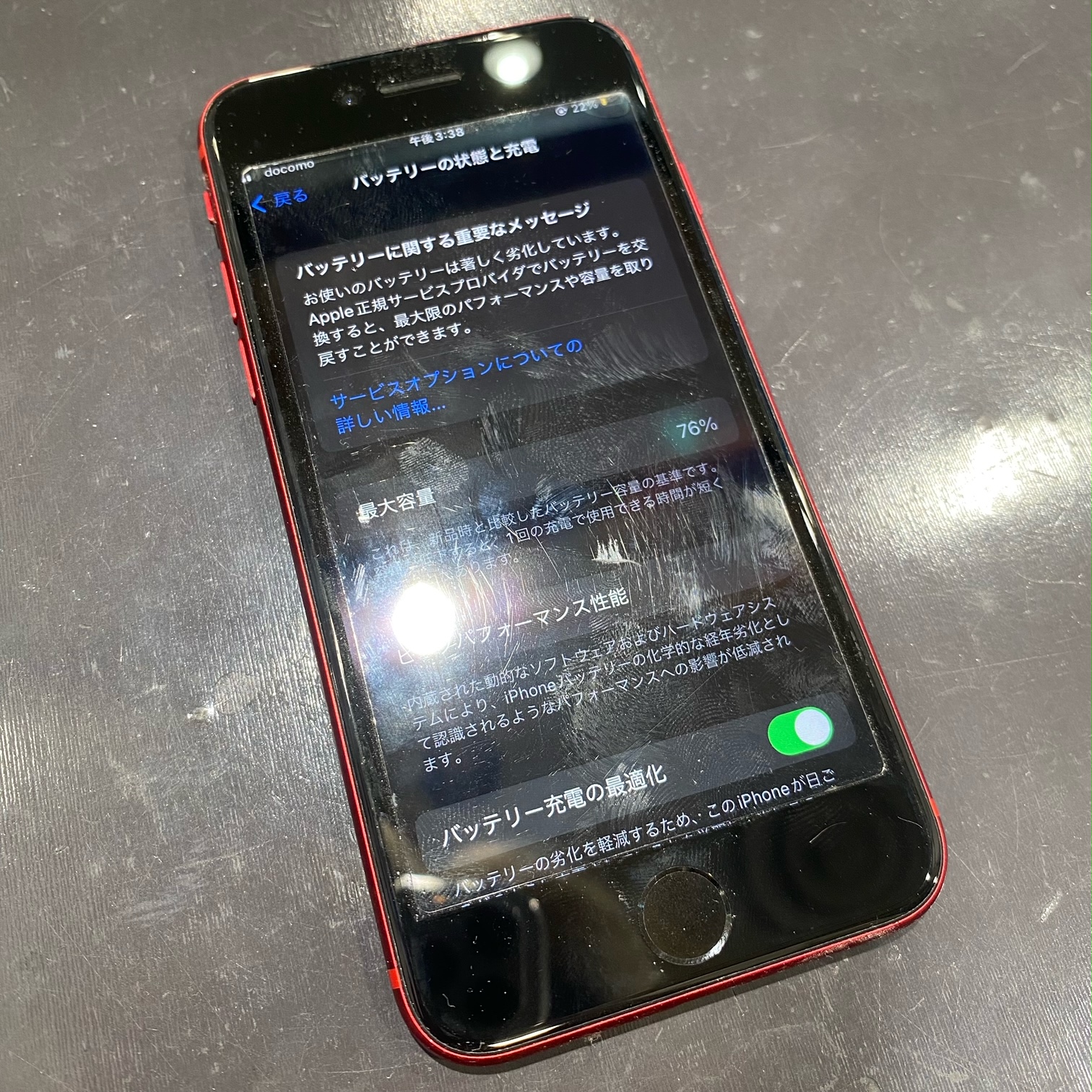 76%とかなり劣化している状態でした。