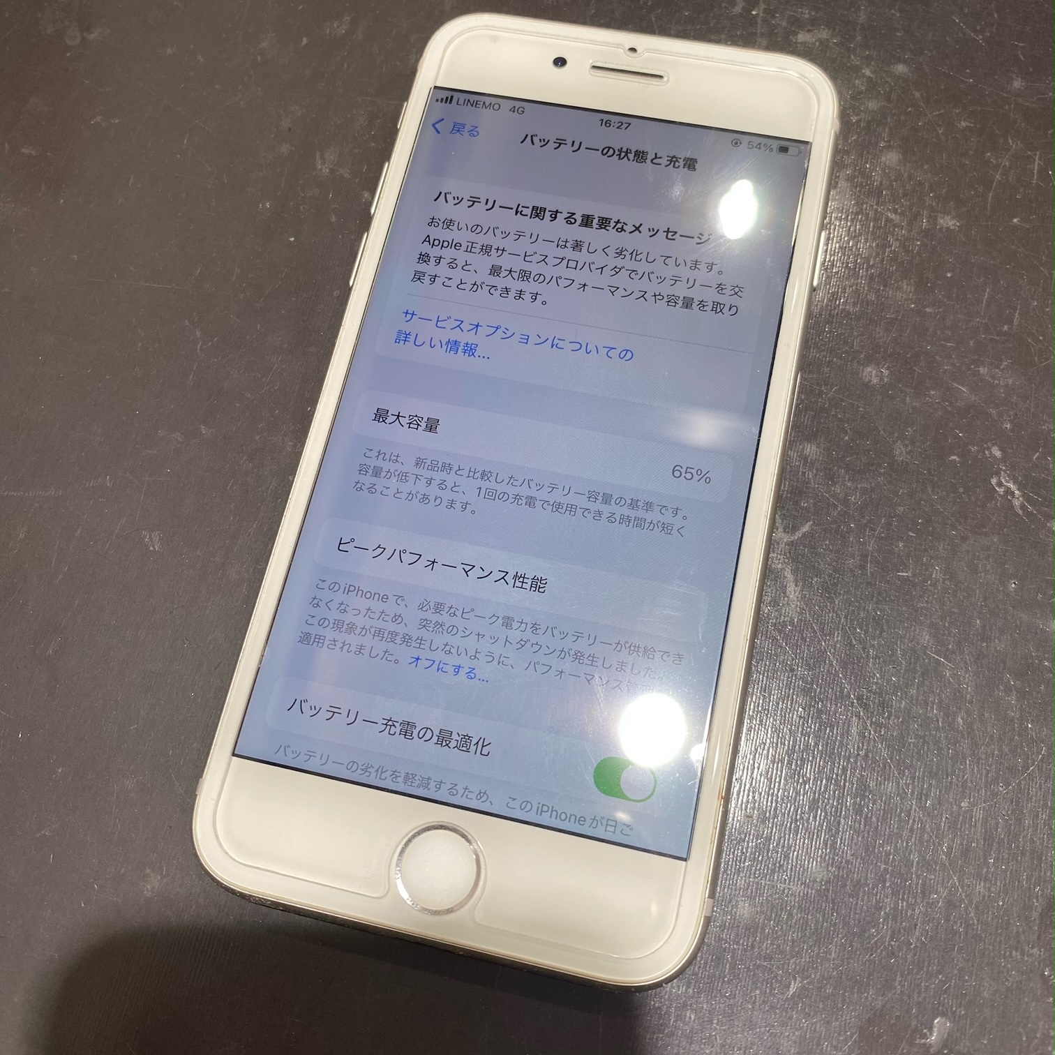 設定から最大容量を確認すると65%とかなり劣化していました。