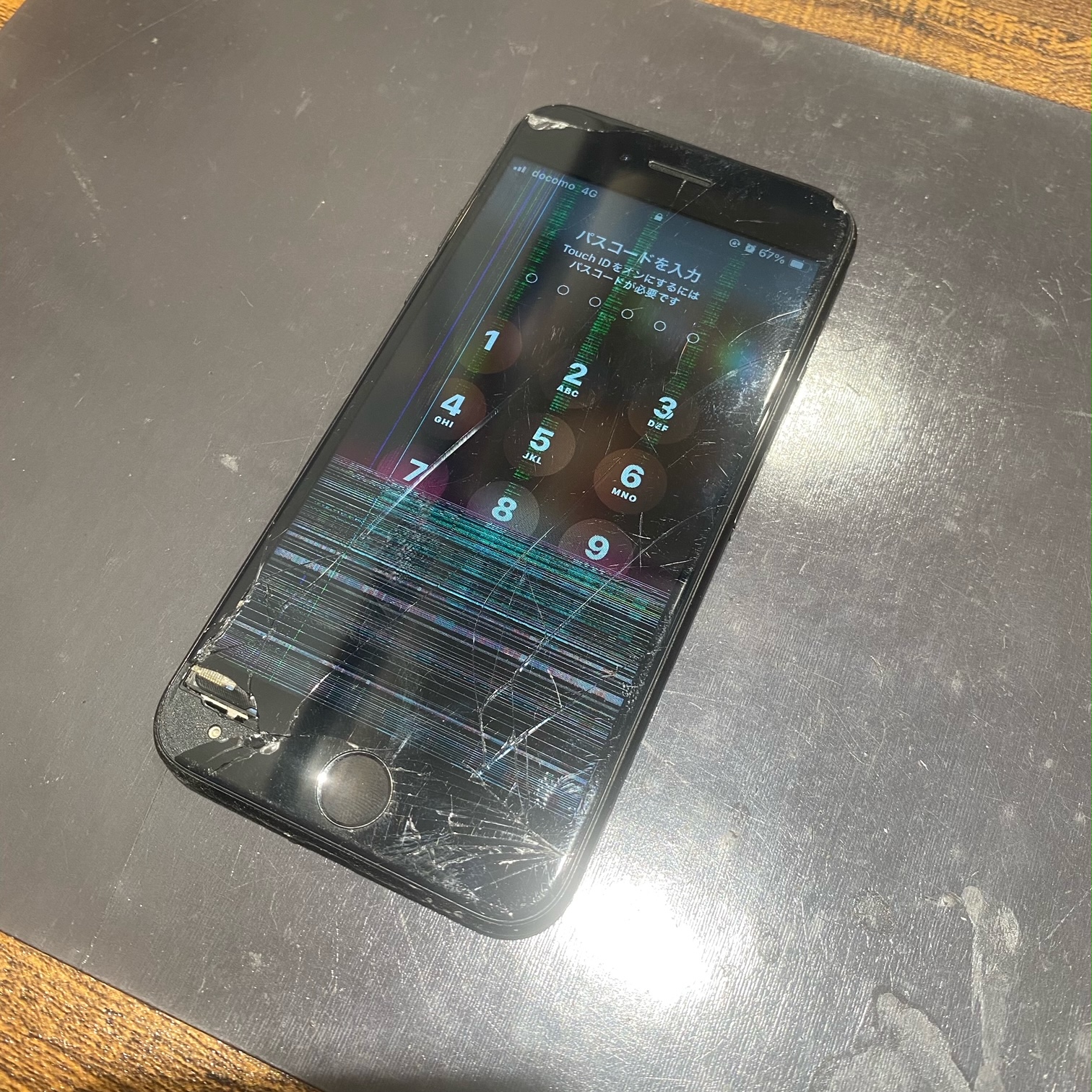 画面左下は大きく損傷し、液晶の下半分は線が入っている状態でした。